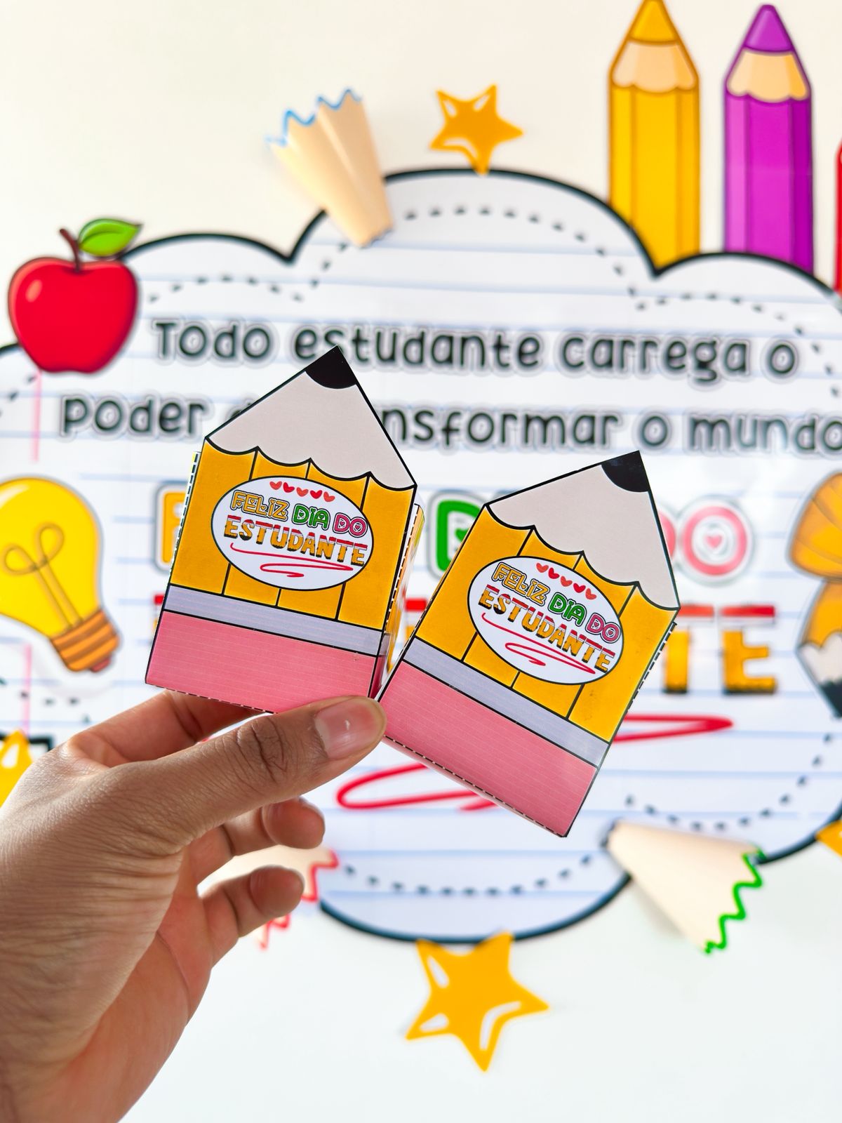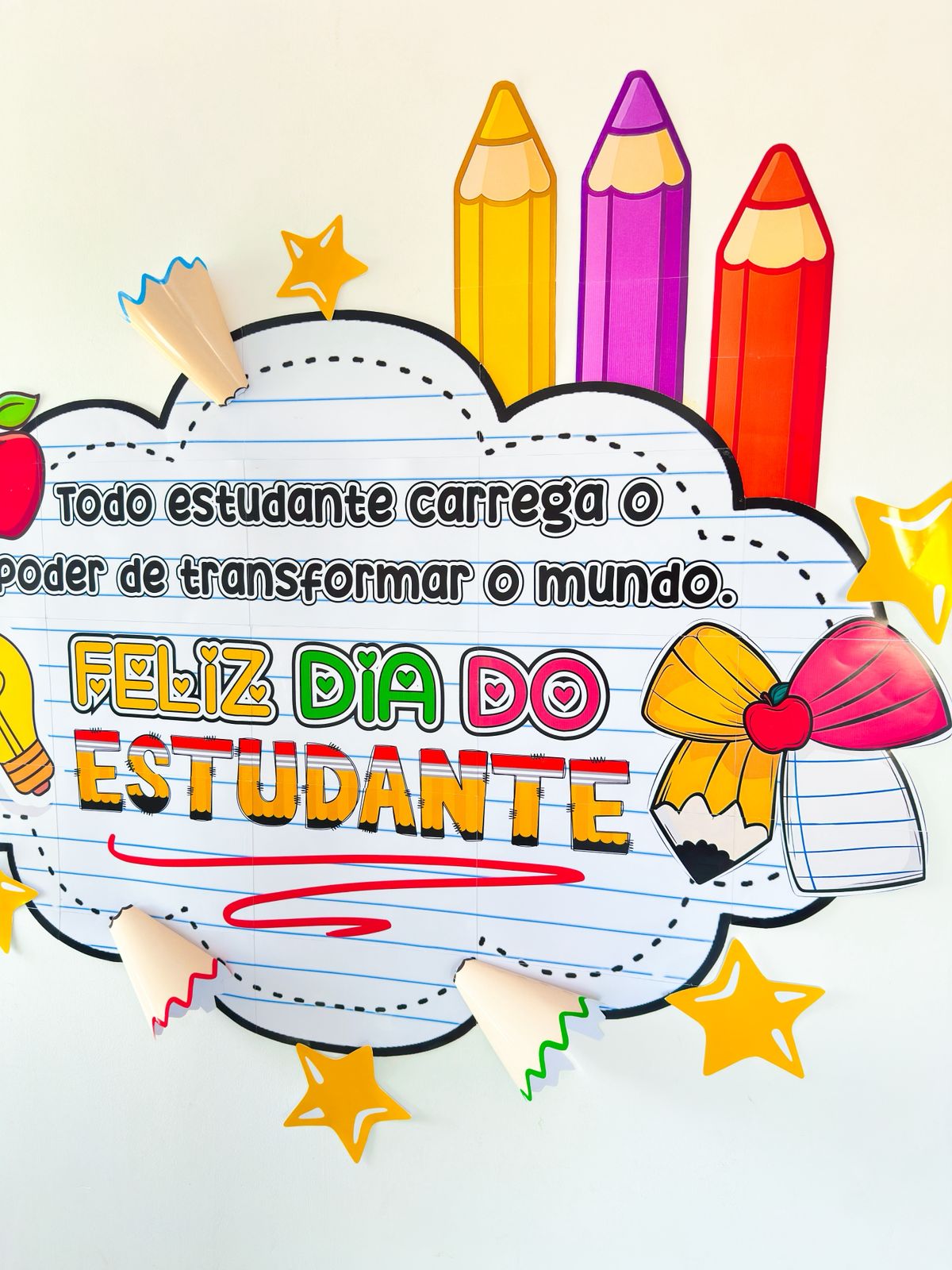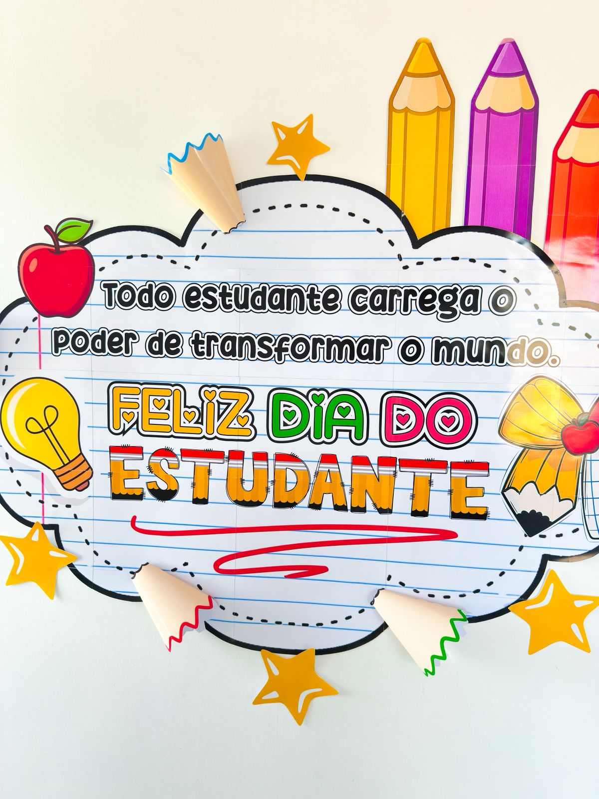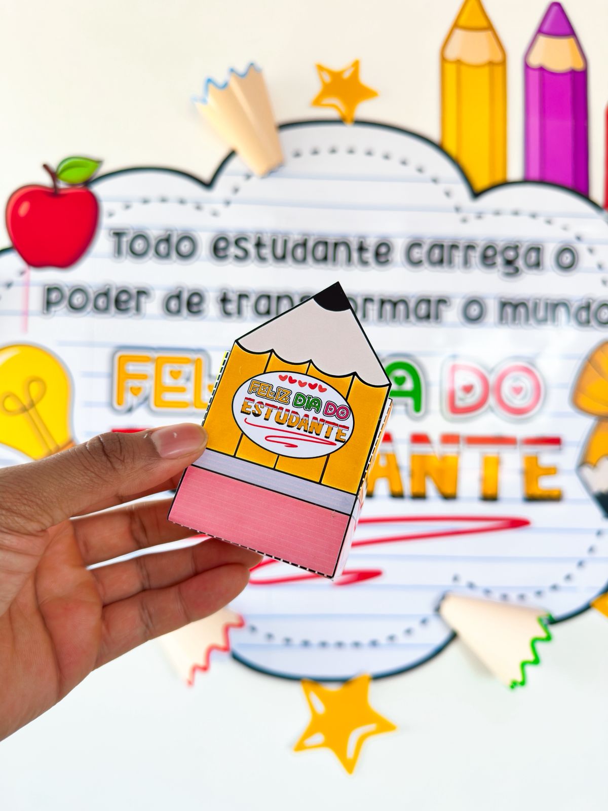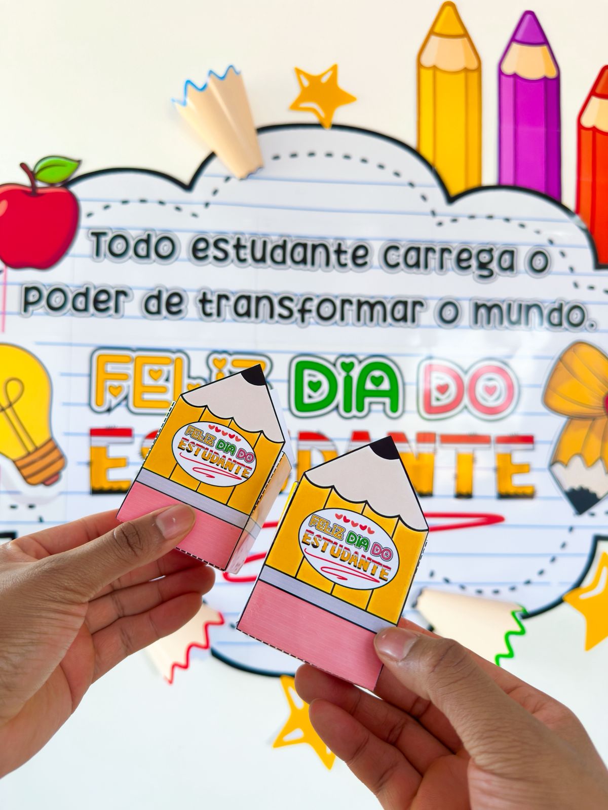 Painel simples para o dia do estudante, acompanha lembrancinha e contem 37 páginas.