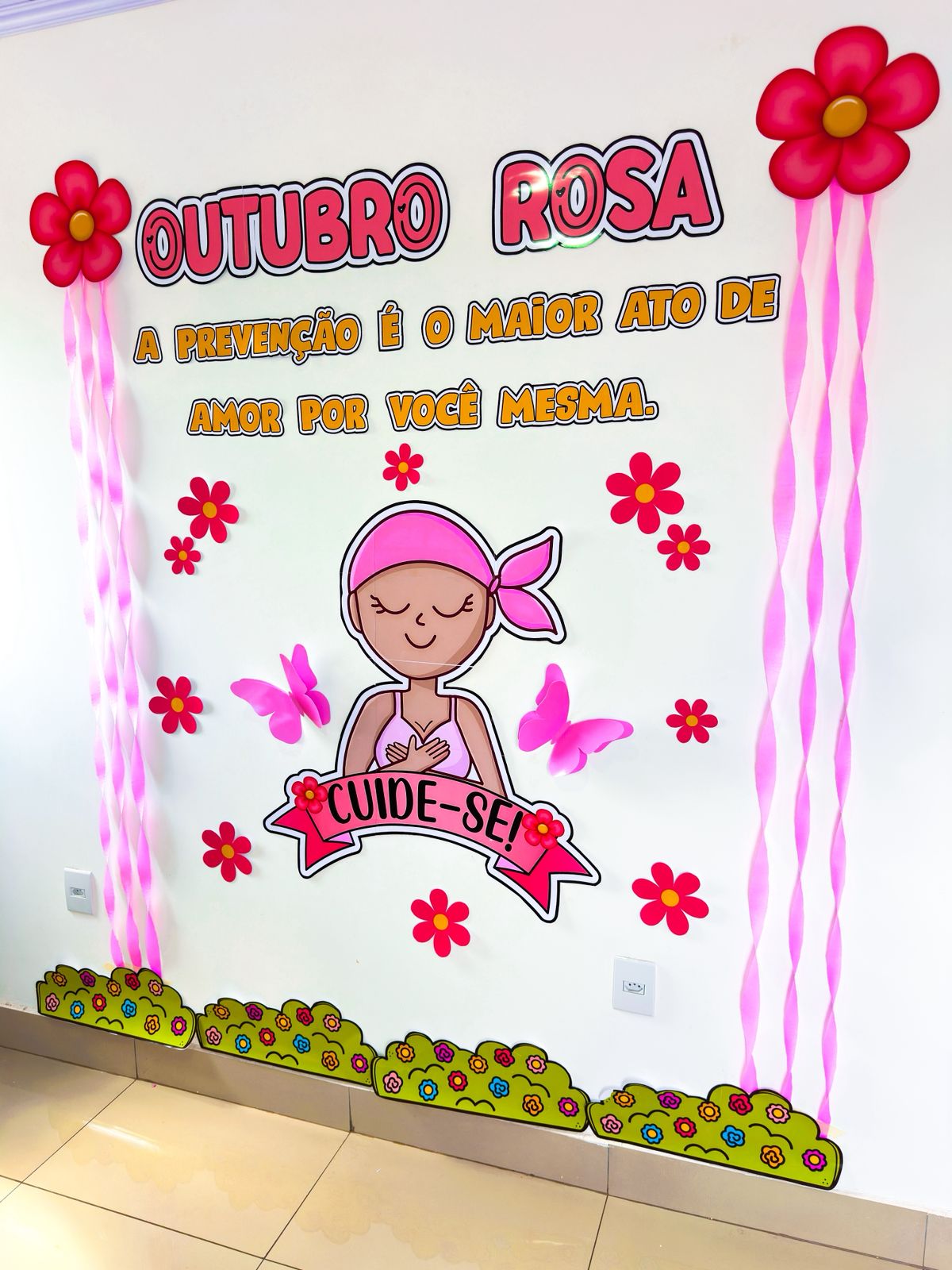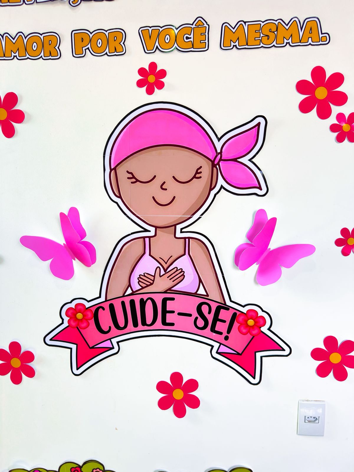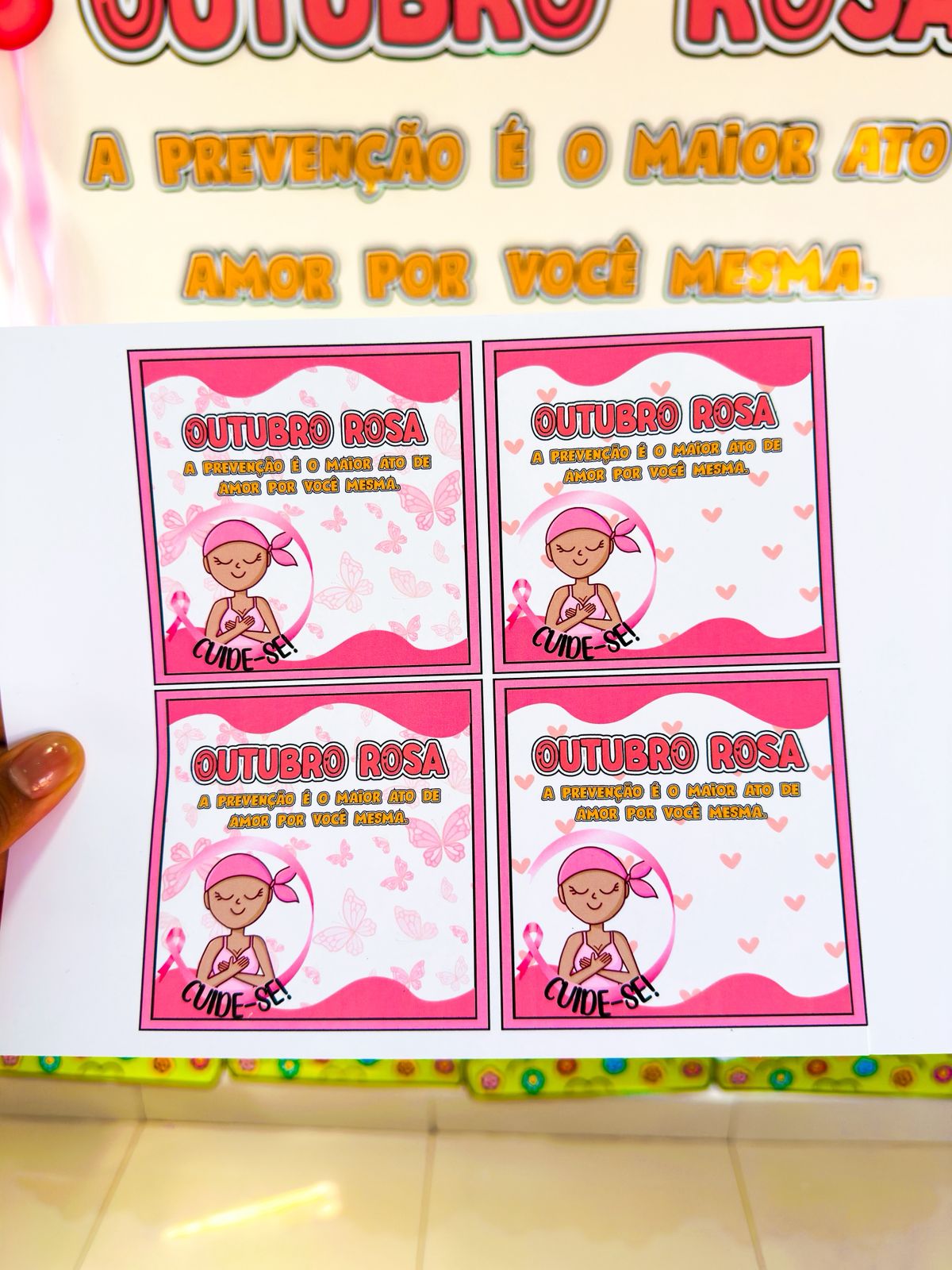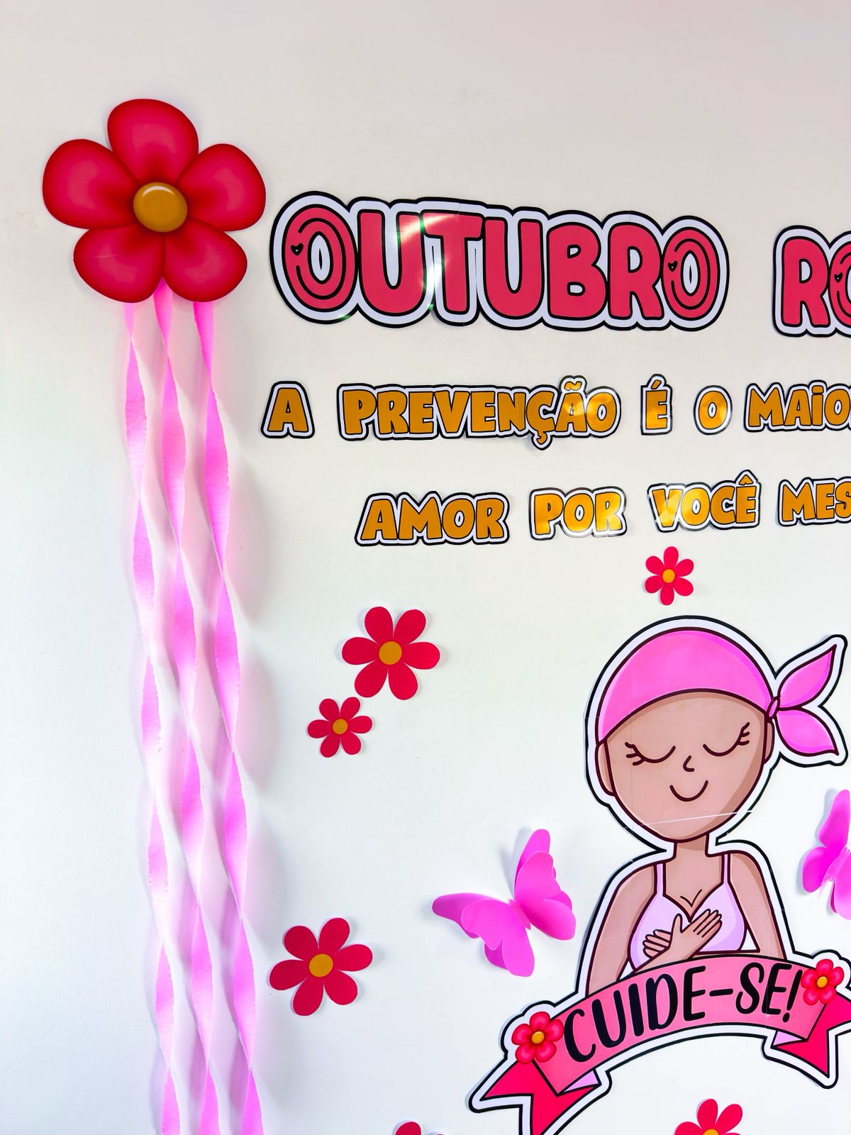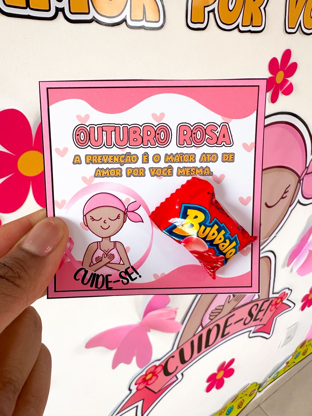 Painel para o mês da conscientização mundial sobre a prevenção e o diagnóstico precoce do câncer de mama. O arquivo possui 30 páginas e está medindo entorno de 1,80m de largura e 2,05m de altura. ACOMPANHA LEMBRANCINHA